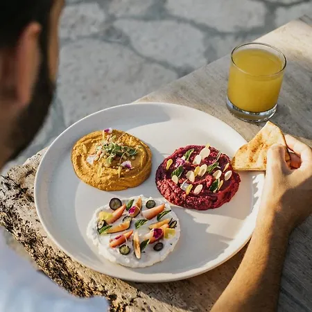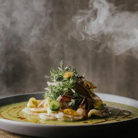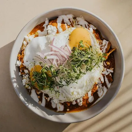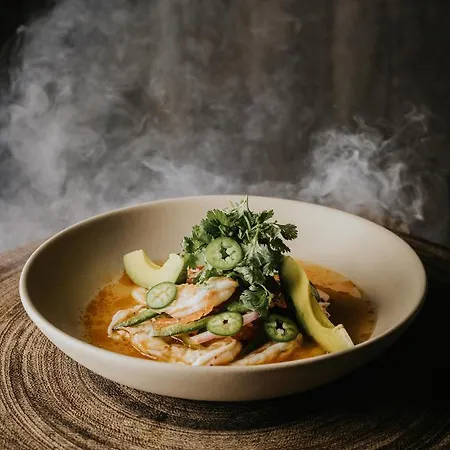Gasten zijn van harte welkom om te genieten van gerechten uit vegetarische keuken die worden geserveerd in het Mexicaanse restaurant Gaudea in dit hotel in Tulum Pueblo. - 🍹